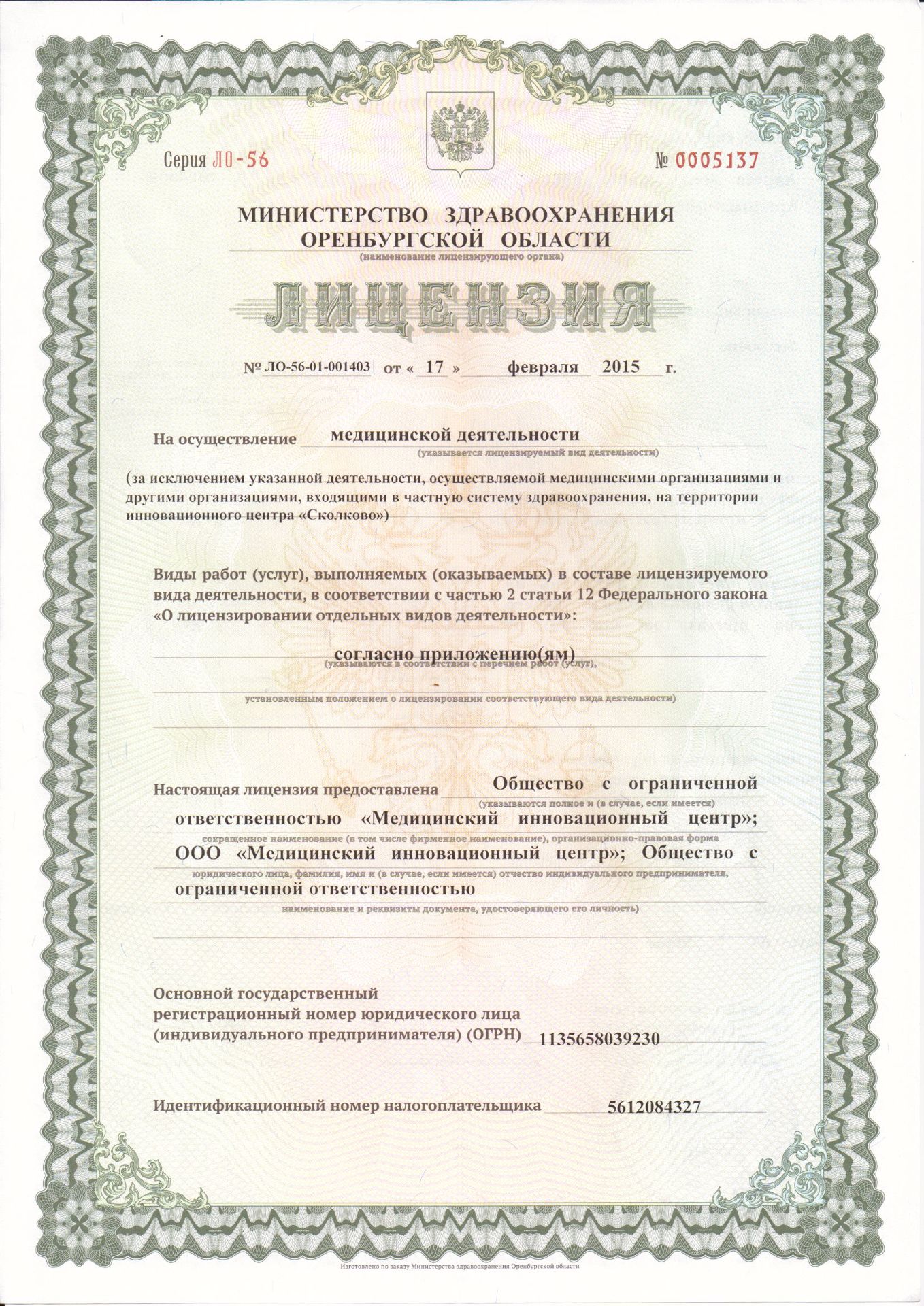 ОГРН: 1135658039230