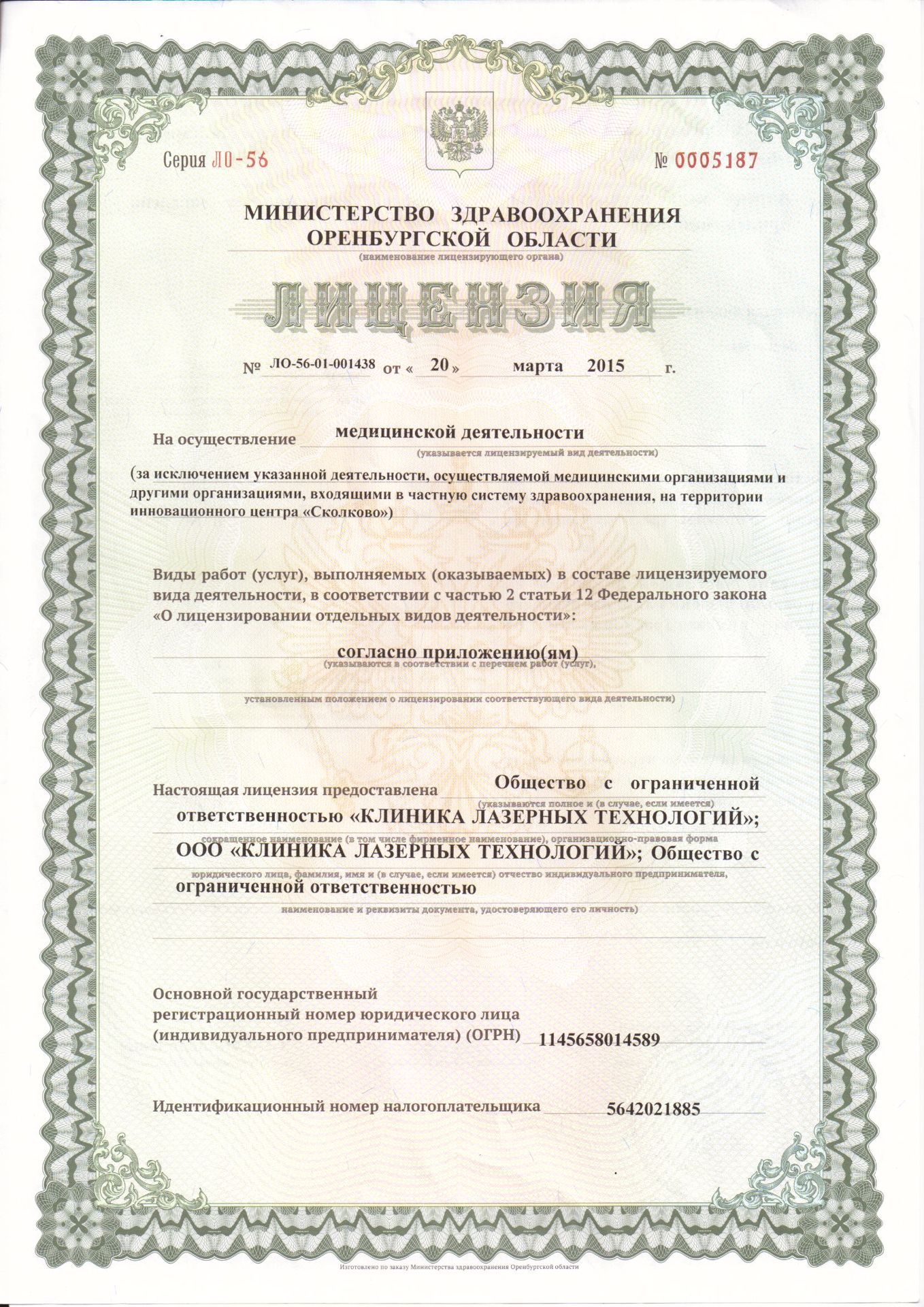 ОГРН: 1135658039230
